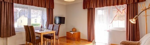 Gut ausgestattete Apartments mit separaten Eingängen stehen den Gästen ganzjährig zur Verfügung. Die Wohnung und die Suite: Ein- und Zweizimmerwohnungen, die bieten Platz für 2-3-4 Personen. Das Apartmenthaus verfügt ausschließlich über Nichtraucherwohnungen. Auf den Balkonen und im Garten stehen Gartenmöbel, Sonnenschirme, Sonnenliegen und Grillmöglichkeit zur Verfügung.