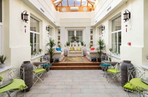 Wellness-Dienstleistungen: offenes Schwimmbecken, Sauna, Sonnenterasse