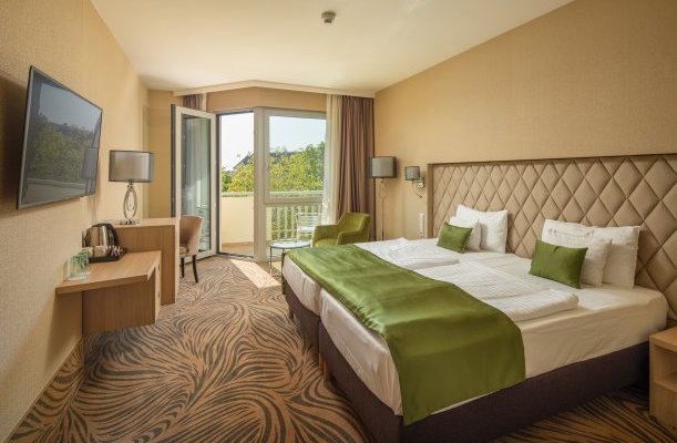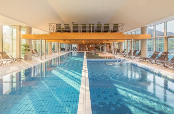 - Freie Benutzung der erneuerten exklusiven Badelandschaft (Innen- und Außenbecken, 2 Becken mit eigenem, staatlich anerkanntem Heilwasser gefüllt, Schwimmbecken, Baby-Plantschbeckenund) der einzigartigen Saunawelt