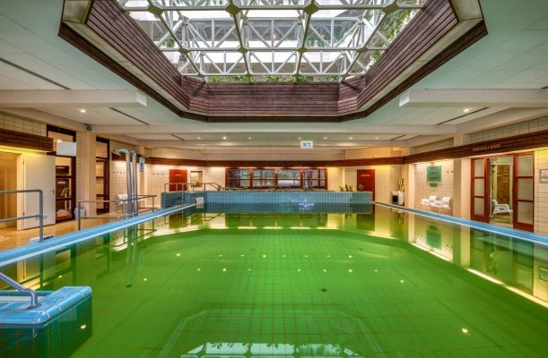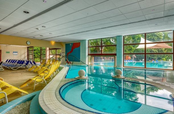 Hallenbad mit Thermalwasser: 36 °C-os, 12.5m x 8m groß, zum Schwimmen nicht geeignet, Hallenbad, Thermalbad