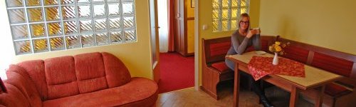 Die exklusiv eingerichteten, familienfreundlichen Apartments sind klimatisiert, verfügen über eine ausgestattete Küche und ein separates Badezimmer mit Dusche. Bis zu fünf Personen können bequem in dem eleganten, geräumigen Wohn- und Schlafzimmer übernachten. Ein neues Doppelbett im Schlafzimmer und eine gemütliche, öffenbaren Eckgarnitur im Wohnzimmer dienen dem Komfort der Gäste. Beide Zimmer verfügen über einen Flachbildfernseher (Kabel-TV, DVD). Für eine perfekte Erholung stellt das Hotel hochwertige Bettwäsche, Badelaken und Handtücher zur Verfügung. Der Küchenbereich ist ausgestattet mit Küchenmöbeln, Esstisch, Besteck, Geschirr, Kochplatte, Kaffeemaschine, Mikrowelle, Spüle, Kühlschrank, Wasserkocher. WLAN ist im gesamten Apartmentgebäude verfügbar. Die Wohnungen sind Nichtraucherwohnungen. Rauchen ist auf dem zu den Zimmern gehörenden Balkon möglich. Einige der Wohnungen wurden mit original OTO-Vibrationstrainern ausgestattet. Die Zimmer sind ohne Aufpreis buchbar, sie werden in der Reihenfolge der Buchung belegt. Die Gäste können die Geräte im eigenen Zimmer kostenlos und ohne Einschränkungen nutzen. Für Kinder gibt es im Garten einen Spielplatz und Erwachsene haben die Möglichkeit zu grillen. Im Heil- und Erlebnisbad in der Nähe der Unterkunft warten Erlebnisbäder, Heilbecken, eine Saunawelt, ein Kinderbecken, ein Hallenbad, ein Freibad und eine Babywelt auf die, die sich vergnügen möchten. Angelmöglichkeit ist auch nicht weit von den Apartments.