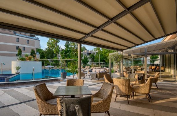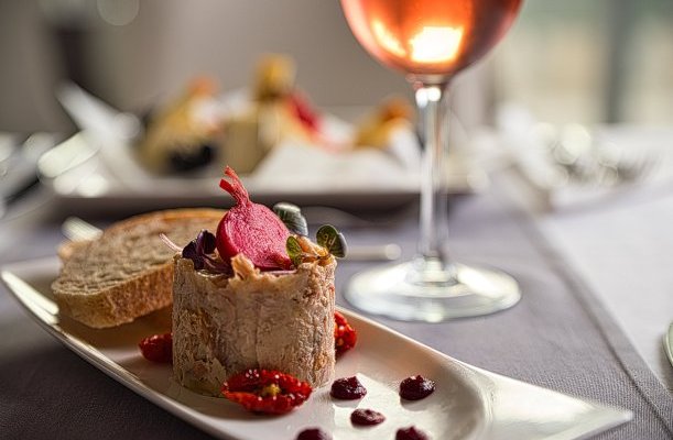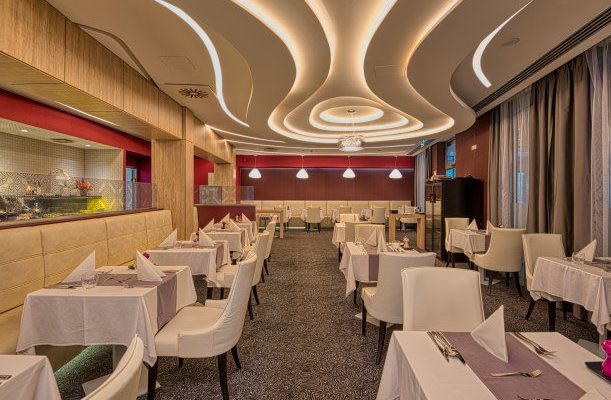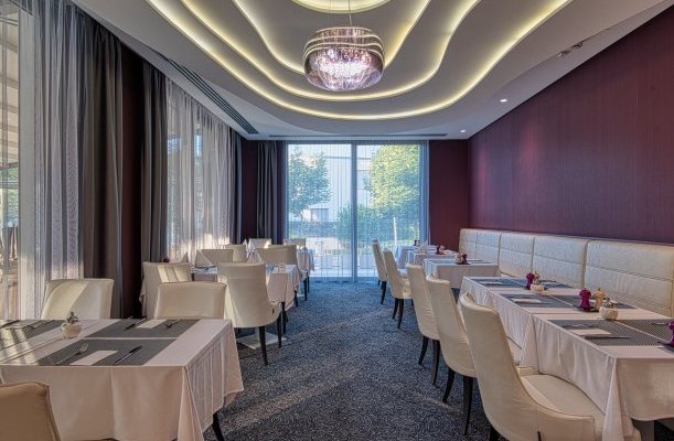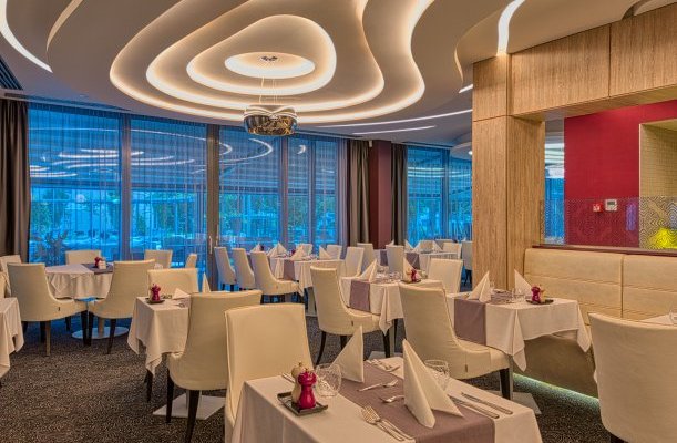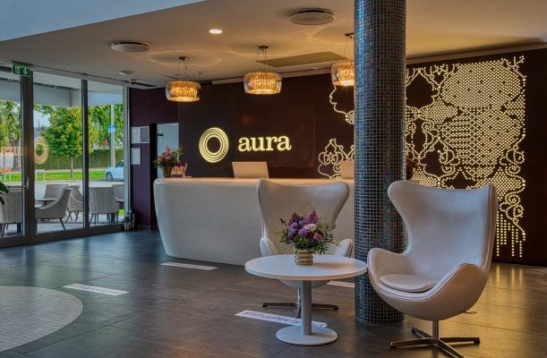 Das Hotel verfügt über ein eigenes Restaurant, das ungarische, lokale Spezialitäten, moderne und traditionelle Gerichte sowie spezielle Diäten, laktosefreie, glutenfreie und vegetarische Ernährung anbietet. Halbpension ist im Boutique-Restaurant L'aura des Hotels verfügbar. Gerichte im Einklang mit globalen Trends sowie Gerichte aus regionalen Zutaten stillen den Hunger der Gastronomieliebhaber. Neben den sorgfältig zubereiteten Spezialitäten empfehlen sie ihre Balaton-Weinauswahl und die preisgekrönten Schnäpse der Nobilis Pálinkafarm. Die Spezialität der Hotelbar, der Bubble Bar, sind Champagner vom Weingut Kreinbacher in Somló sowie frisch gepresste Fruchtsäfte und Teespezialitäten von La Via del Té.