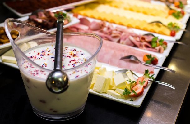 Die Gäste können das reiche Buffet- oder a’la carte-Frühstück im Restaurant zu sich nehmen.