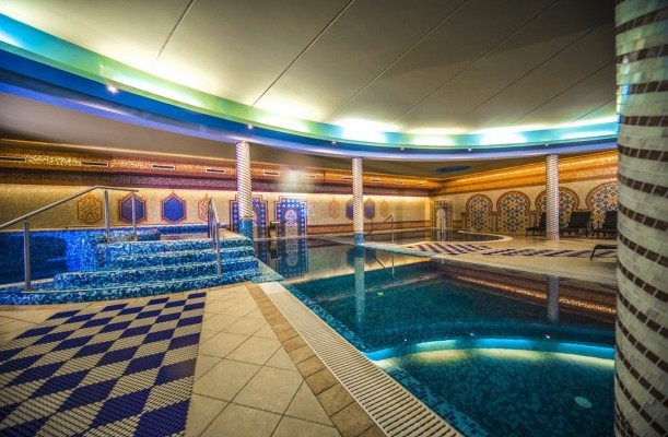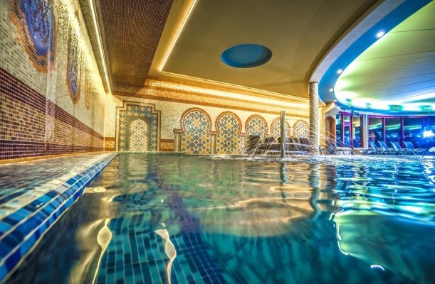 Wellness-Dienstleistungen: Schwimmhalle, offenes Schwimmbecken, Sauna, Fitnessraum, Spa & Wellness Zentrum, Friseursalon, Kozmetik, Nagelpflege / Maniküre, Massage, Fußpflege / Pediküre, Sprudelbad, Schönheitssalon, Solarium, Thermalwasser / Heilanlage, Erlebnisbecken, Dampfbad, Infrasauna, Finnische Sauna, Kinder-Planschbecken, Rutche, Sonnenterasse, Heilmassage, Lymphmassage, Thai Massage, Aromaölmassage, Erfrischende Massage