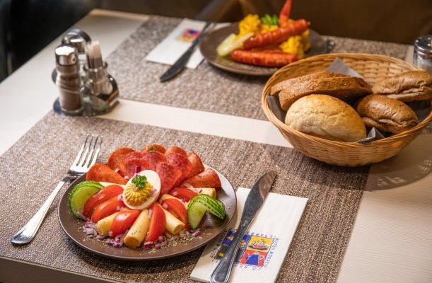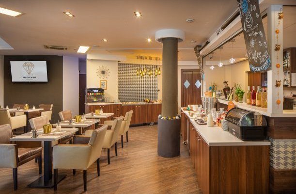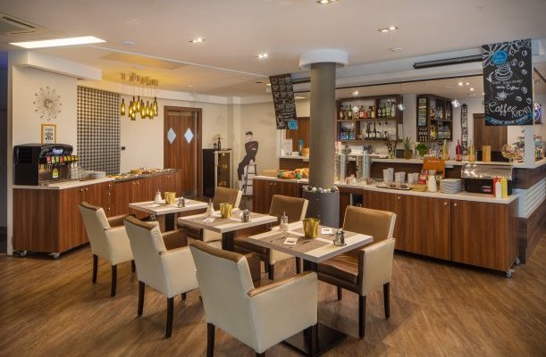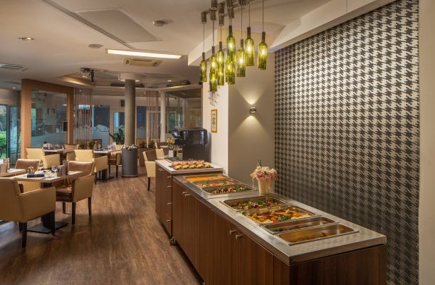 Im Hotelrestaurant kann das Buffet-Frühstück eingenommen werden und in der Trinkbar werden erfrischende Getränke angeboten.