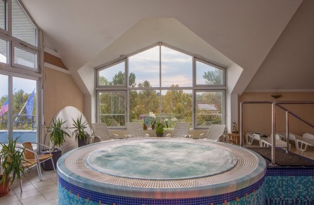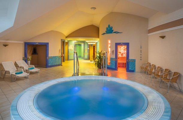 Jacuzzi: 32 °C-os, 9 m2 groß, zum Schwimmen nicht geeignet, Hallenbad