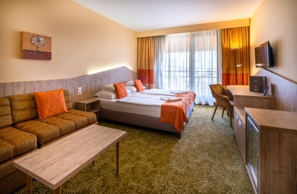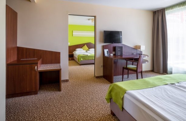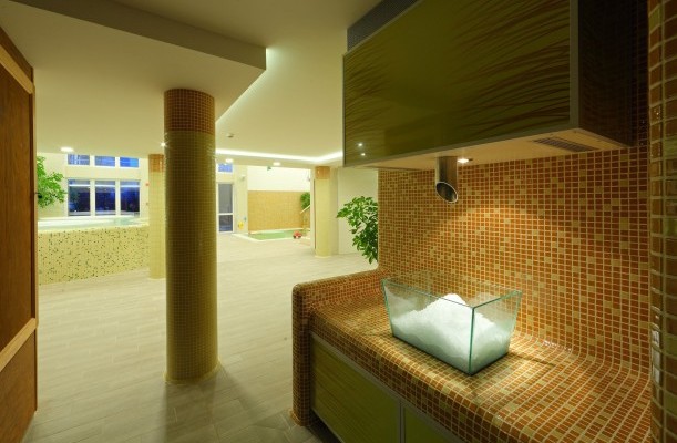 Wellness-Dienstleistungen: offenes Schwimmbecken, Sauna, Massage, Sprudelbad, Infrasauna, Finnische Sauna, Kinder-Planschbecken, Bio-Sauna, Salzhöhle, Aromakabine, Sonnenterasse, Schwedische Massage, Heilmassage, Fettverbrennungsmassage, Lymphmassage, Aromaölmassage, Erfrischende Massage