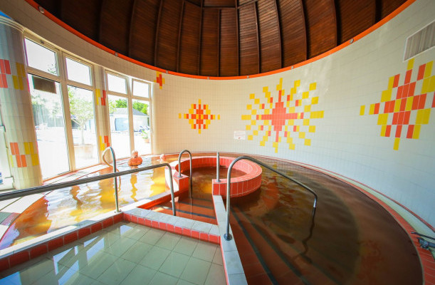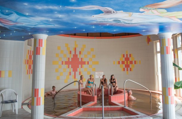 Heilwasserbecken in dem Hauptgebäude: 32 °C-os, 5m x 6m groß, zum Schwimmen nicht geeignet, Hallenbad, Thermalbad