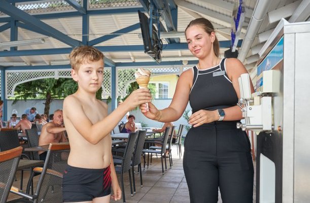 Verpflegung von Gästen in Restaurants: Möglichkeit Bankette zu organisieren, Restaurant / Kaffeehaus, Zimmerservice, Bar neben dem Scwimmbecken, Menü für Kinder, Glutenfreie Speisen, Laktosefreie Speisen, Vegetarische Speisen, Zuckerfreie Speisemöglichkeit, Restaurant, Bar, Konditorei