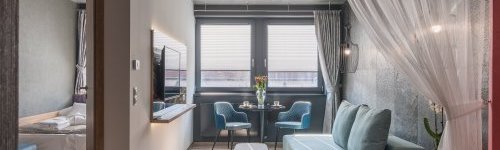 Das Hotel ist einzigartig in der Stadt in Bezug auf seine Ausstattung und besondere Innenarchitekturlösungen. Es gehört mit seinem Erscheinungsbild und seinen Leistungen nicht zur klassischen Apartment-Kategorie, ist aber aufgrund der Größe der Zimmer auch nicht als Standard-Hotel einzustufen. Es gibt 64 Zimmer in dem zweistöckigen Hotel, das aus 3 Gebäudeteilen besteht; Jedes Zimmer oder Apartment ist teilweise mit eigenem Wohnzimmer, Küche mit Jacuzzi oder Whirlpool und Badezimmer ausgestattet, komplett ausgestattet und klimatisiert.