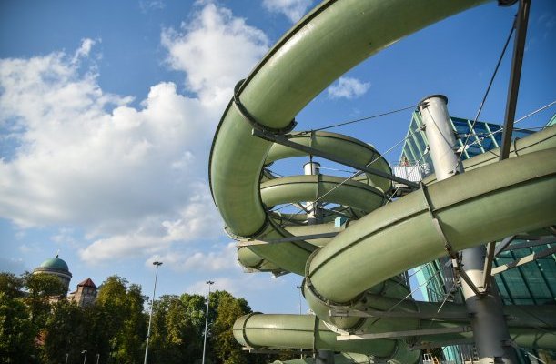 Outdoor-Rutsche: 27 °C-os, 60 m2 groß, zum Schwimmen nicht geeignet, Freibad