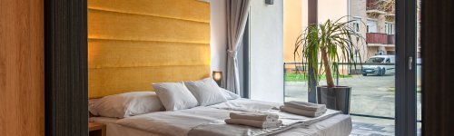 Ideale Unterkunft für diejenigen, die sich entspannen, Urlaub machen und entspannen möchten. Die mehrere-Raum-Apartments bieten eine heimelige, freundliche Unterkunft für Paare, Familien mit mehreren Kindern und Gruppen von Freunden. Unterkunft geeignet für die Unterbringung größerer Gruppen. Der neu erbaute Komplex verfügt über 34 exklusive, komplett ausgestattete (großer Flatscreen-TV, Küchengeräte, Kühlschrank, Klimaanlage), moderne, geschmackvoll eingerichtete Apartments und Doppelzimmer. Auf Anfrage stellen sie ein Kinderbett, einen Kindersitz, einen Tritthocker und anderes Zubehör für Gäste bereit, die mit kleinen Kindern anreisen. Mit der Ausstattung ihrer Apartments bieten sie ihren Gästen grundsätzlich Selbstverpflegung an, auf Wunsch kann aber auch ein reichhaltiges Frühstücksbuffet oder Halbpension gebucht werden, die im Onyx Garden Restaurant des benachbarten Onyx Luxury Aparthotels genossen werden können.