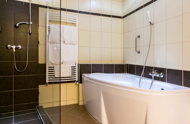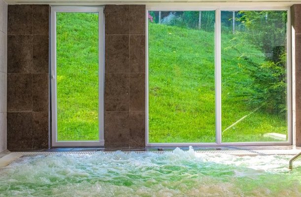 Jacuzzi: 35 °C-os, 20 m2 groß, zum Schwimmen nicht geeignet, Hallenbad