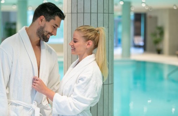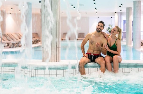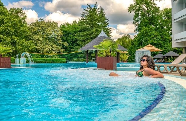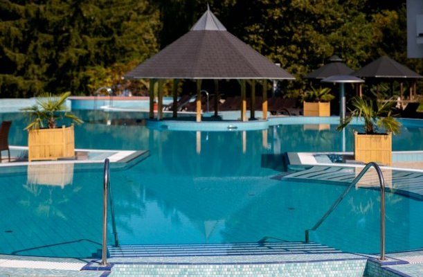 Wellness-Dienstleistungen: Schwimmhalle, offenes Schwimmbecken, Sauna, Spa & Wellness Zentrum, Massage, Sprudelbad, Solarium, Thermalwasser / Heilanlage, Erlebnisbecken, Dampfbad, Infrasauna, Finnische Sauna, Kinder-Planschbecken, Thermal-/Heilwasserbecken, Salzhöhle, Aromakabine, Schwedische Massage, Aromaölmassage, Fußmassage, Massage mit Lavastein, Herbalmassage, Erfrischende Massage,