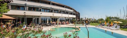 Die Wellness-Abteilung des Hotels verbindet römische Spa-Kultur mit den modernsten Techniken unserer Zeit. In der großzügigen, hellen Badehalle befinden sich ein Warmwasserbecken, ein Sprudelbad und ein Kinderplanschbecken sowie ein Tepidarium, Caldarium, Laconium, Frigidarium, Kneipp-Fußmassagegerät, Aromadusche und ein mediterraner Ruhebereich im Dampfbad . Von Frühling bis Herbst wird das Angebot um Außen-Erlebnisbecken und eine Sonnenterrasse erweitert. In den Gesichts- und Körperbehandlungsräumen des Wellnesszentrums werden die Gäste mit weltberühmten Produkten verwöhnt. Der Fitnessraum ist mit modernen Kraft- und Kardiogeräten ausgestattet.