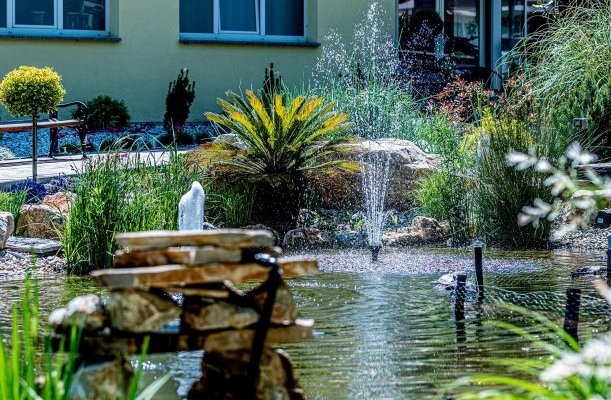 - schöne, grüne Umgebung, privater Park mit Bäume, Büsche, Blumen, ein Gartenteich, der von Goldfischen und Schildkröten bewohnt wird, der Charme der Ruhe und Harmonie, der Duft der frischen Luft des Plattensees