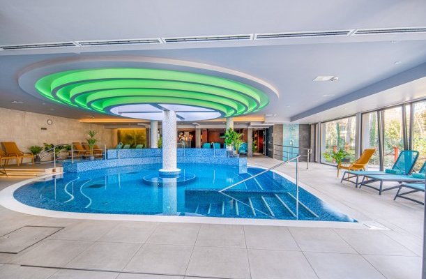 Sprudelbad: 35 °C-os, zum Schwimmen nicht geeignet, Hallenbad