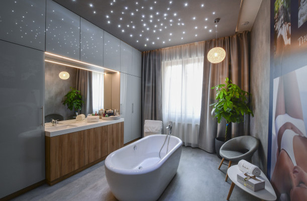 Wellness-Dienstleistungen: offenes Schwimmbecken, Sauna, Fitnessraum, Spa & Wellness Zentrum, Massage, Sprudelbad, Solarium, Thermalwasser / Heilanlage, Erlebnisbecken, Dampfbad, Infrasauna, Finnische Sauna, Tauchbecken, Kinder-Planschbecken, Türkisches Bad (Hamam), Rutche, Bio-Sauna, Salzhöhle, Aromakabine, Heilmassage, Fettverbrennungsmassage, Aromaölmassage, Massage mit Lavastein, Erfrischende Massage,