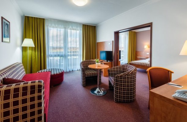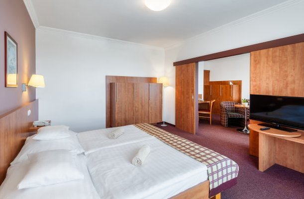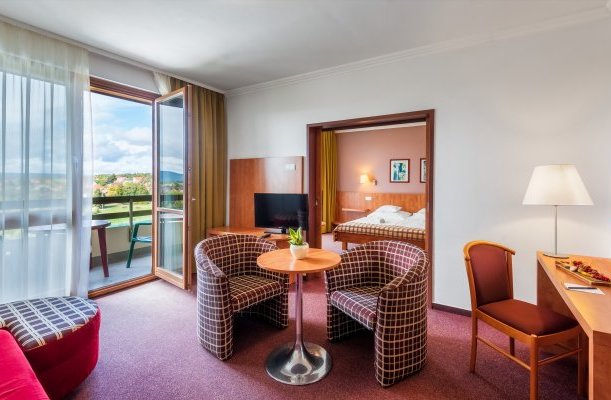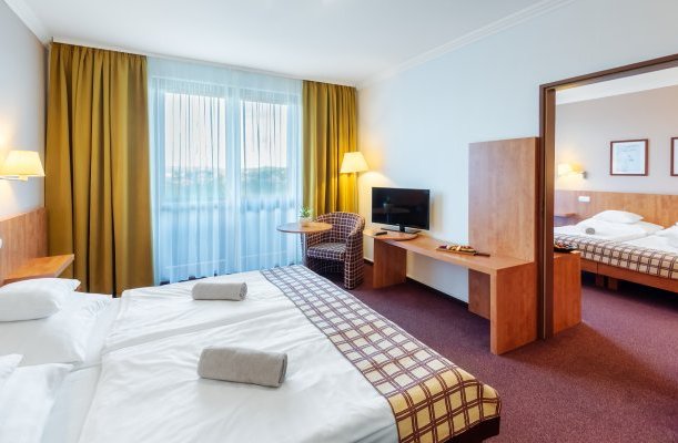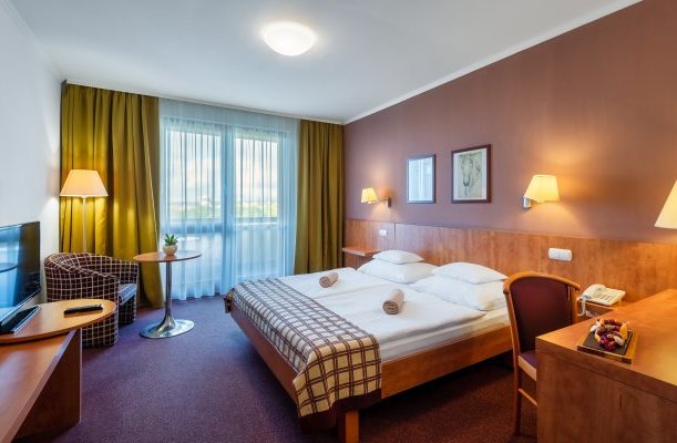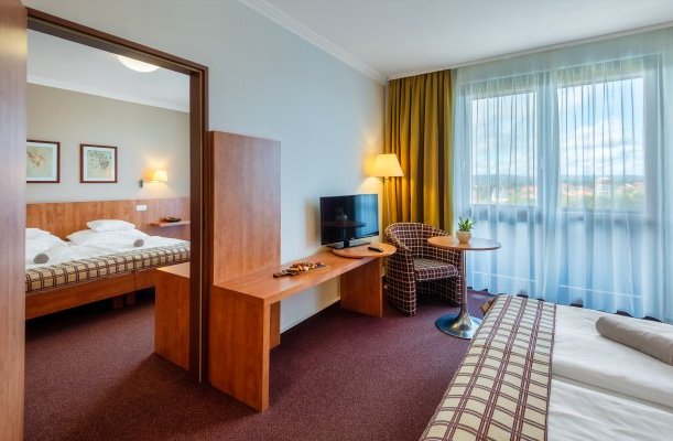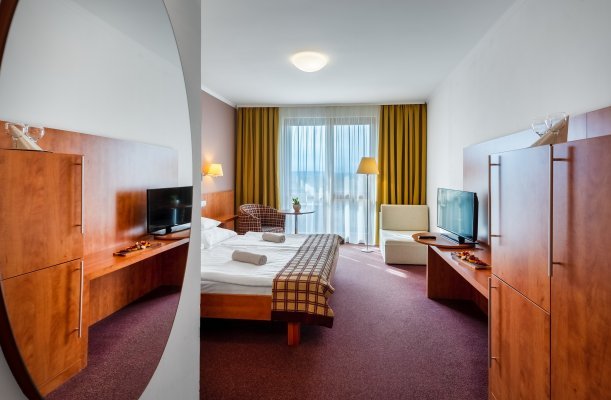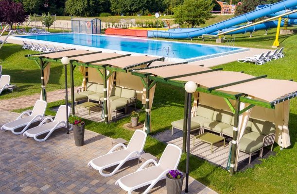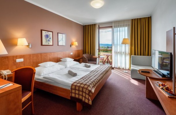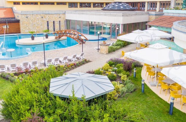 - Benutzung des Wellness-Insels (Erlebnisbad, Thermalbecken, Sauna, Infrarotsauna, Bio Sauna, Blocksauna, Dampfkabine, Salzkabine, Fitnessraum), im Sommersaison Schwimmbecken und Riesenrutsche im Park