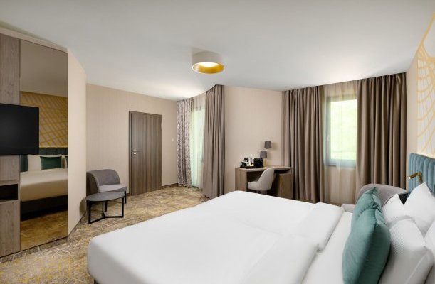- Unbegrenzte Nutzung des Body & Soul Wellness-, Sauna- und Fitnessbereichs: Erlebnishallenbad, Außenbecken für die Erwachsene, Kinder-Innen- und Außenbecken,, finnische Saunen, Infrarotsauna, Dampfkabine, Salzkammer, Erlebnisduschen, Fitnessraum, Yoga-Terrasse