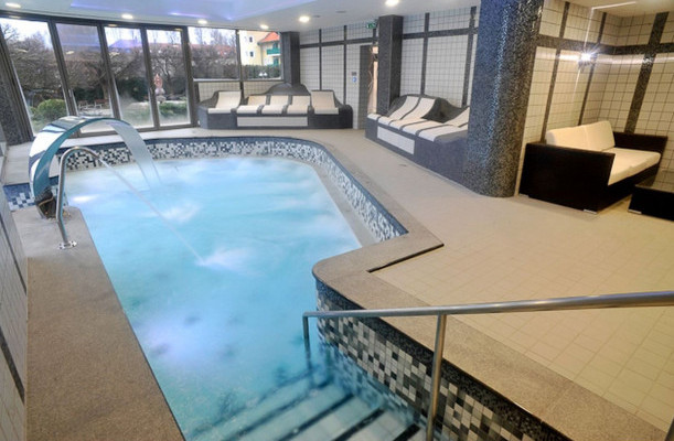 Indoorbecken: 35 °C-os, 9m x 4m groß, zum Schwimmen nicht geeignet, Hallenbad