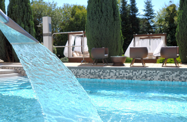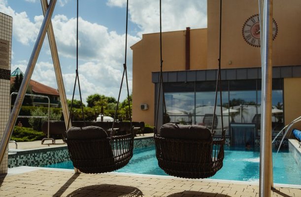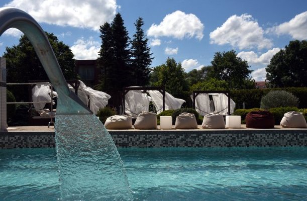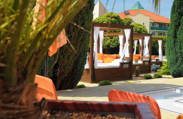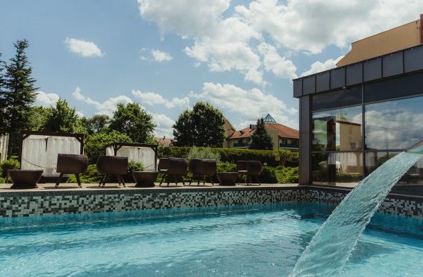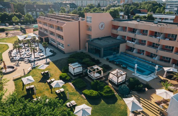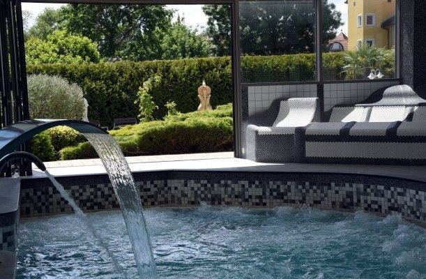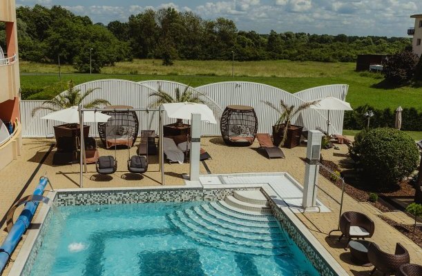Wellness-Dienstleistungen: offenes Schwimmbecken, Sauna, Kozmetik, Nagelpflege / Maniküre, Massage, Fußpflege / Pediküre, Erlebnisbecken, Dampfbad, Infrasauna, Finnische Sauna, Kneippbecken, Sonnenterasse, Heilmassage, Aromaölmassage, Fußmassage, Massage mit Lavastein, Herbalmassage