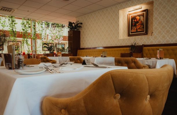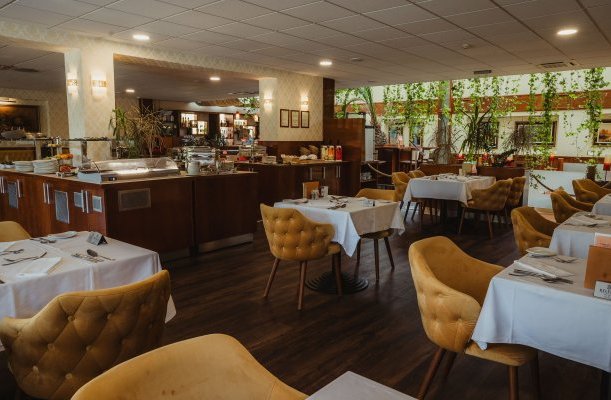Das Restaurant des Hotels erwartet seine Gäste mit Mahlzeiten a’la carte.